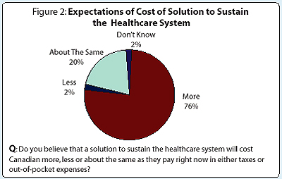 An even larger number (76%) say that a solution to sustain the healthcare system will cost Canadians more than they pay right now in taxes or out of pocket. These are not sentiments that are isolated to any one part of the country or segment of society. These are beliefs that are found in all walks of life, in every province.