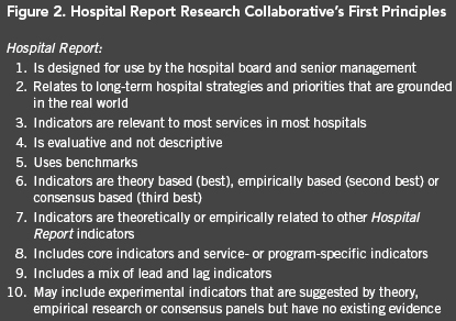 The redevelopment of the financial performance and condition quadrant in Hospital Report attempted to use a more systematic and evidence-based approach to the selection of key financial indicators. In our opinion, the approach reaffirmed the value of collaboration between a university-based team with research skills and practitioners with experience in the financial management of acute care hospitals. Together both parties worked to produce key financial indicators that boards and management can use to improve the financial management of their organizations.