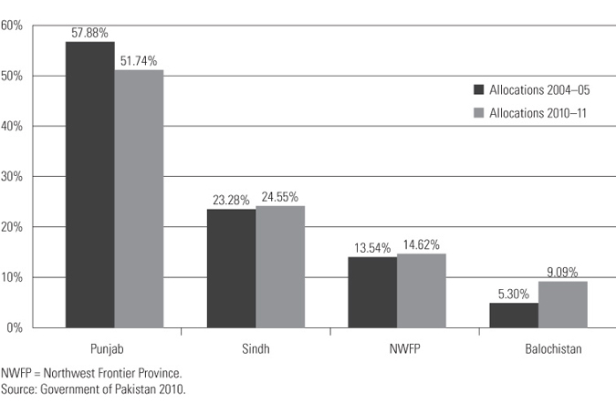 Figure 3. Provincial allocations by the National Finance Commission Award in 2004-05 and 2010-11.