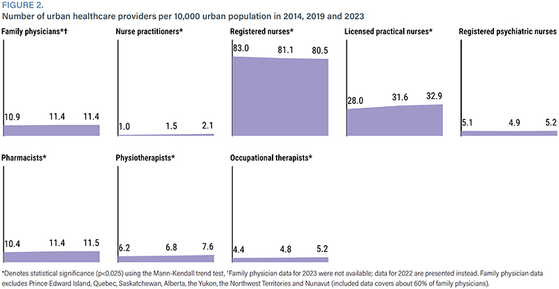 In December 2024, CIHI released its latest State of the Health Workforce in Canada (CIHI 2024e) report with a special focus on primary care. Primary care is a key pillar of Canada's health system. With an increasingly diverse network of healthcare providers delivering primary care (e.g., family physicians, nurse practitioners, other regulated nurses, occupational therapists, physiotherapists, pharmacists, social workers, dietitians, midwives, paramedics, psychologists and psychotherapists), understanding trends in supply, distribution and composition of the various providers is essential to inform policy and strategies for proper planning, management and delivery of health services.
